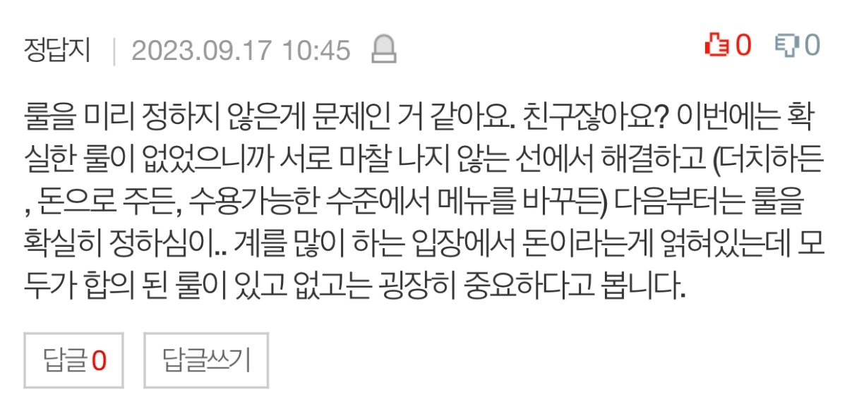 다들 어안이 벙벙한지 회비로 먹기로 했으면 회비로 먹는거지 뭐래? 이렇게 올렸더니 또 다른 친구가 둘이나 안나오는데 그비싼 참치코스를 너네끼리 먹고싶냐? 이러는 겁니다.