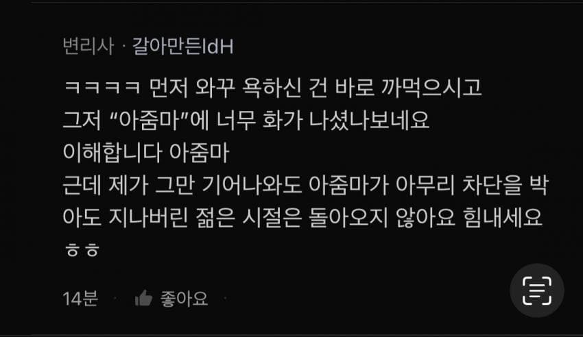 그 이후 아줌마의 댓글은 볼 수 없었다..